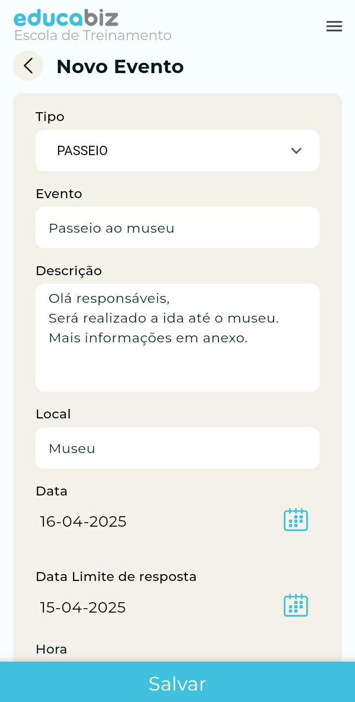 - Publicar - Insere o evento no calendário dos responsáveis e será enviado apenas a notificação push.