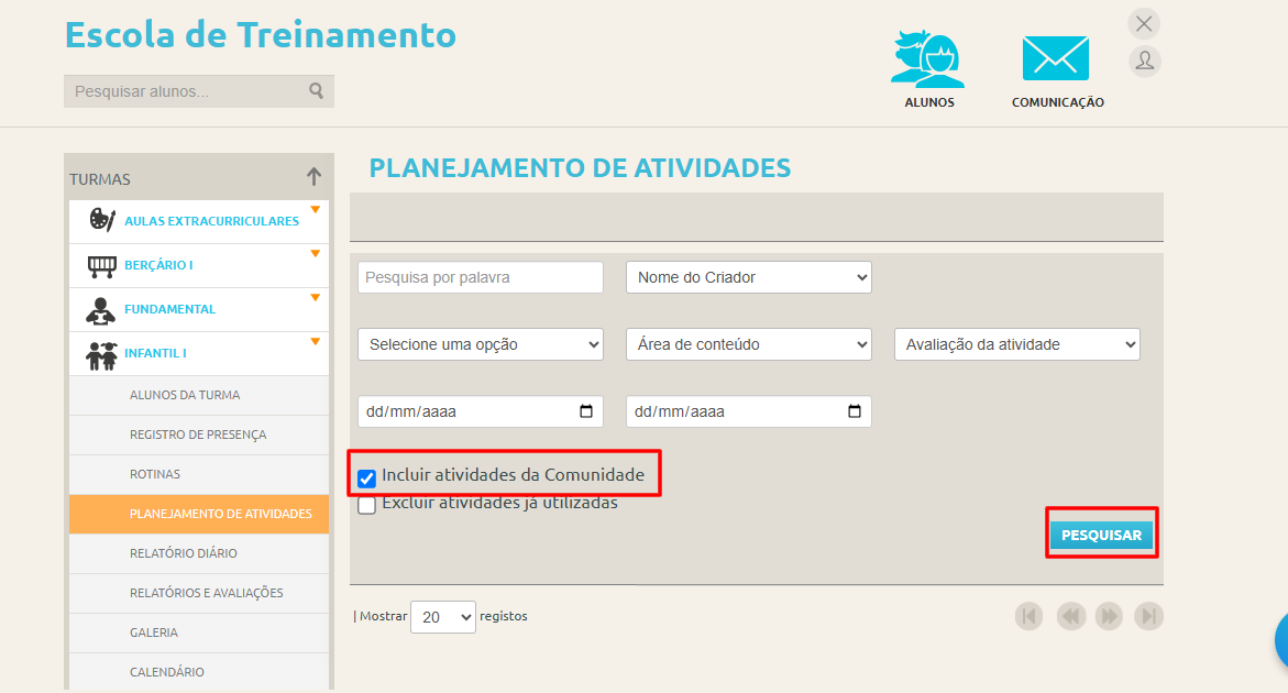 Em seguida, selecione a opção de Incluir Atividades da Comunidade.