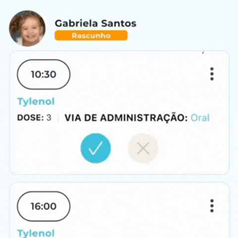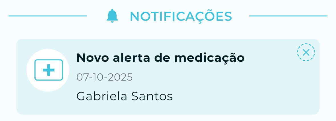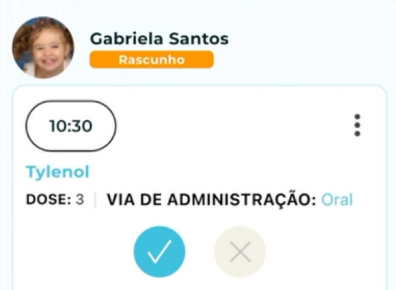 Toda medicação cadastrada pelos responsáveis fica disponível nas notificações na página inicial do seu perfil de educador: