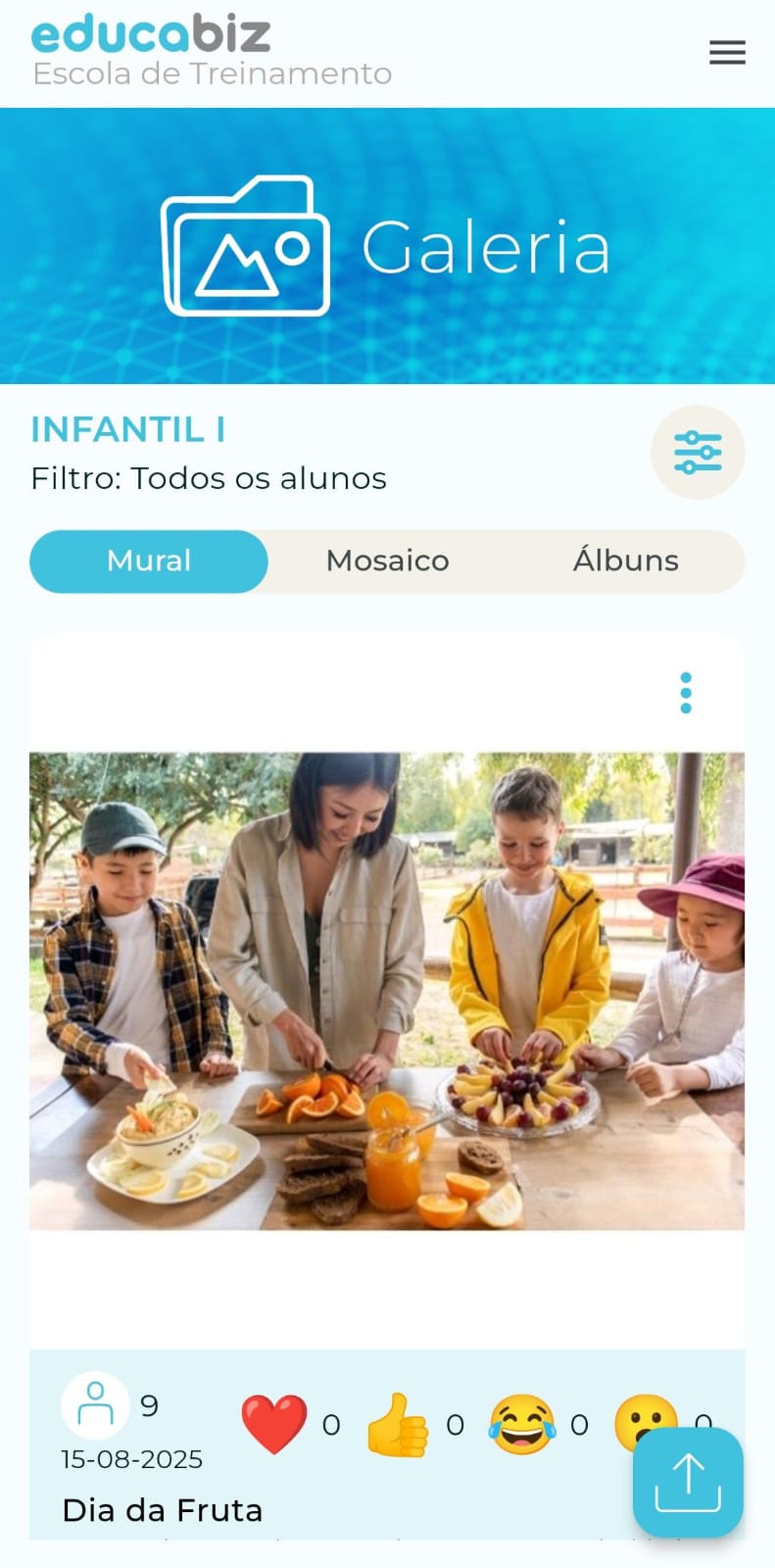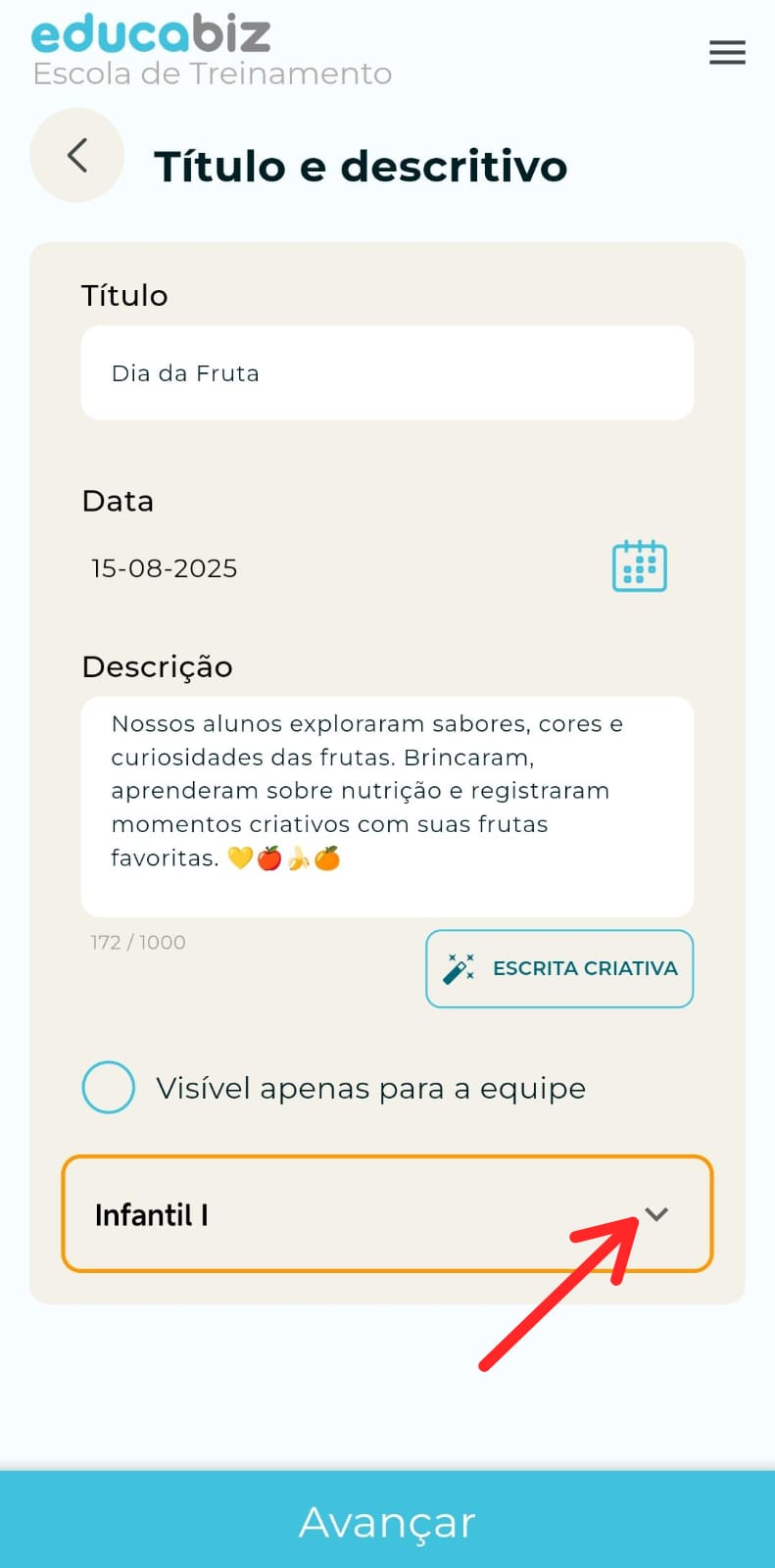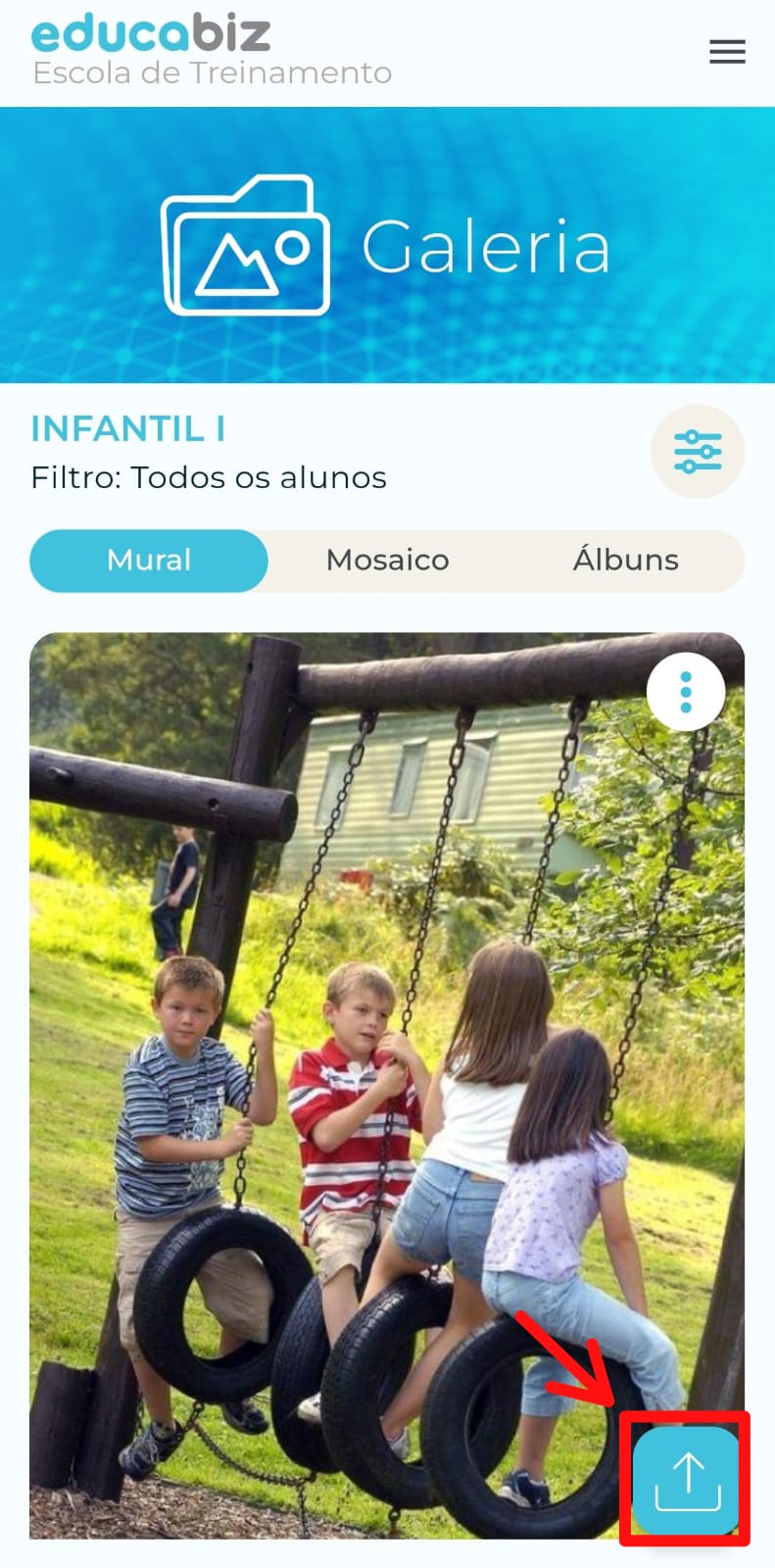 Para publicar fotos e vídeos pelo aplicativo na turma: