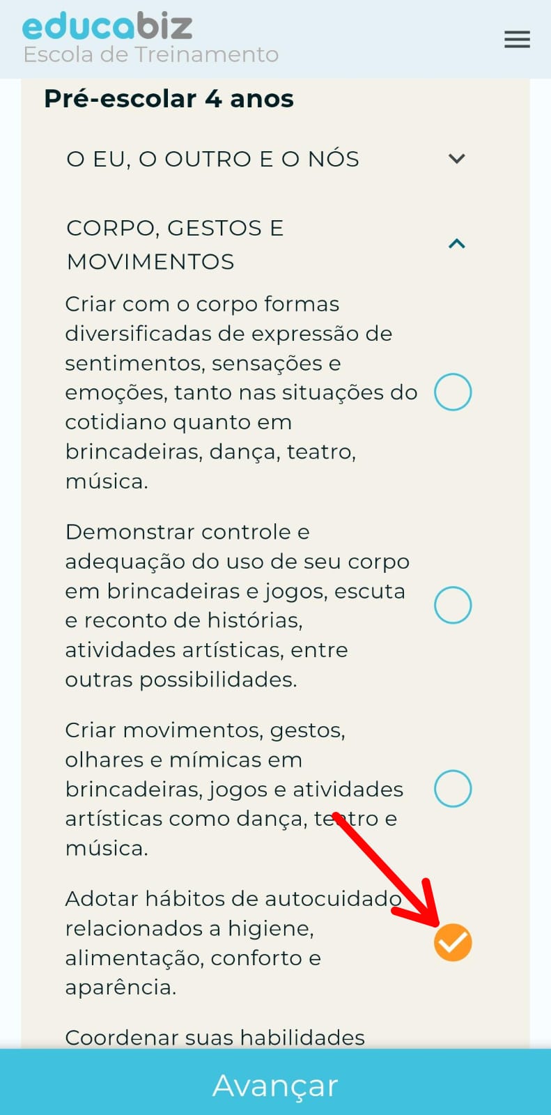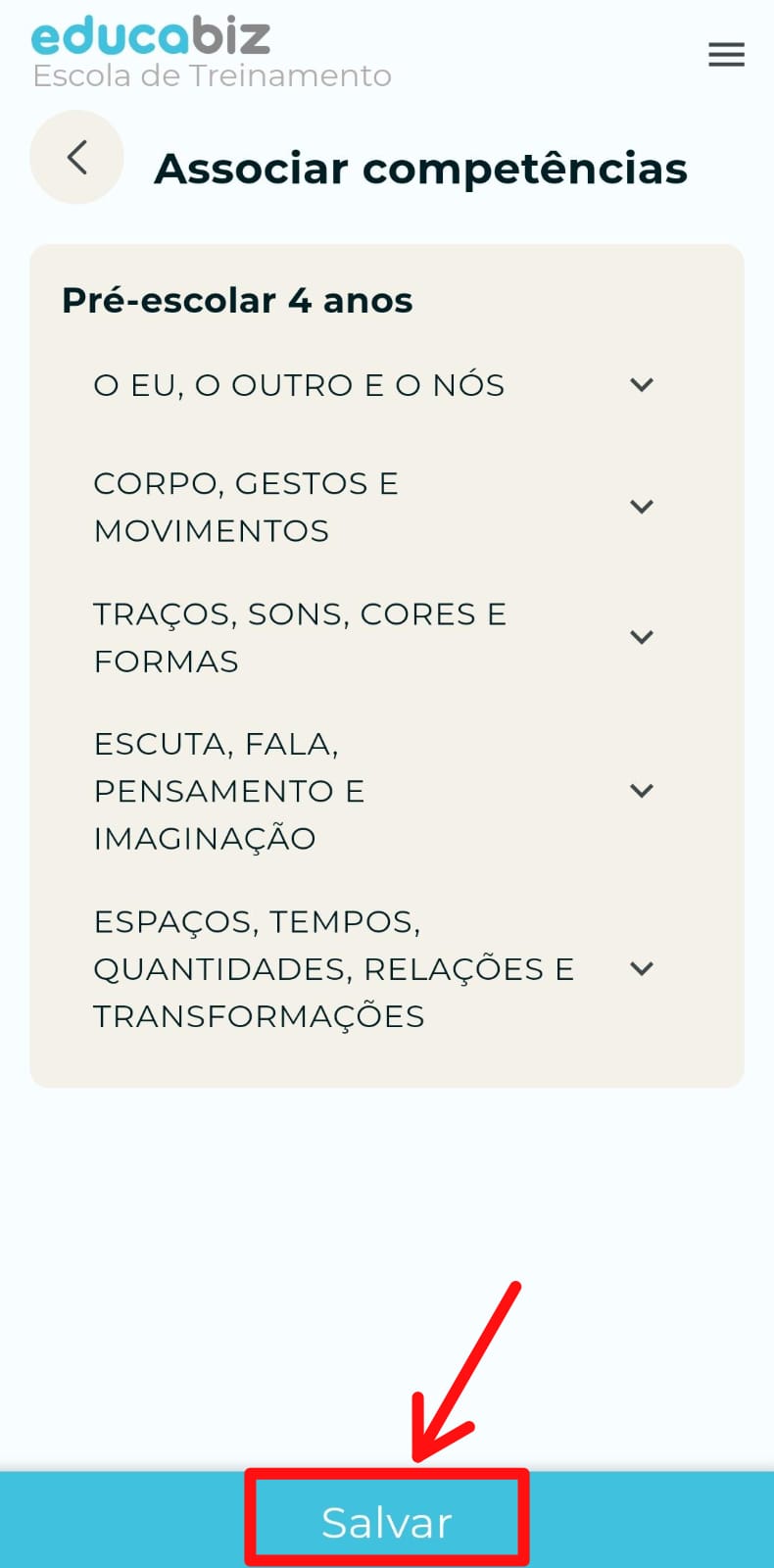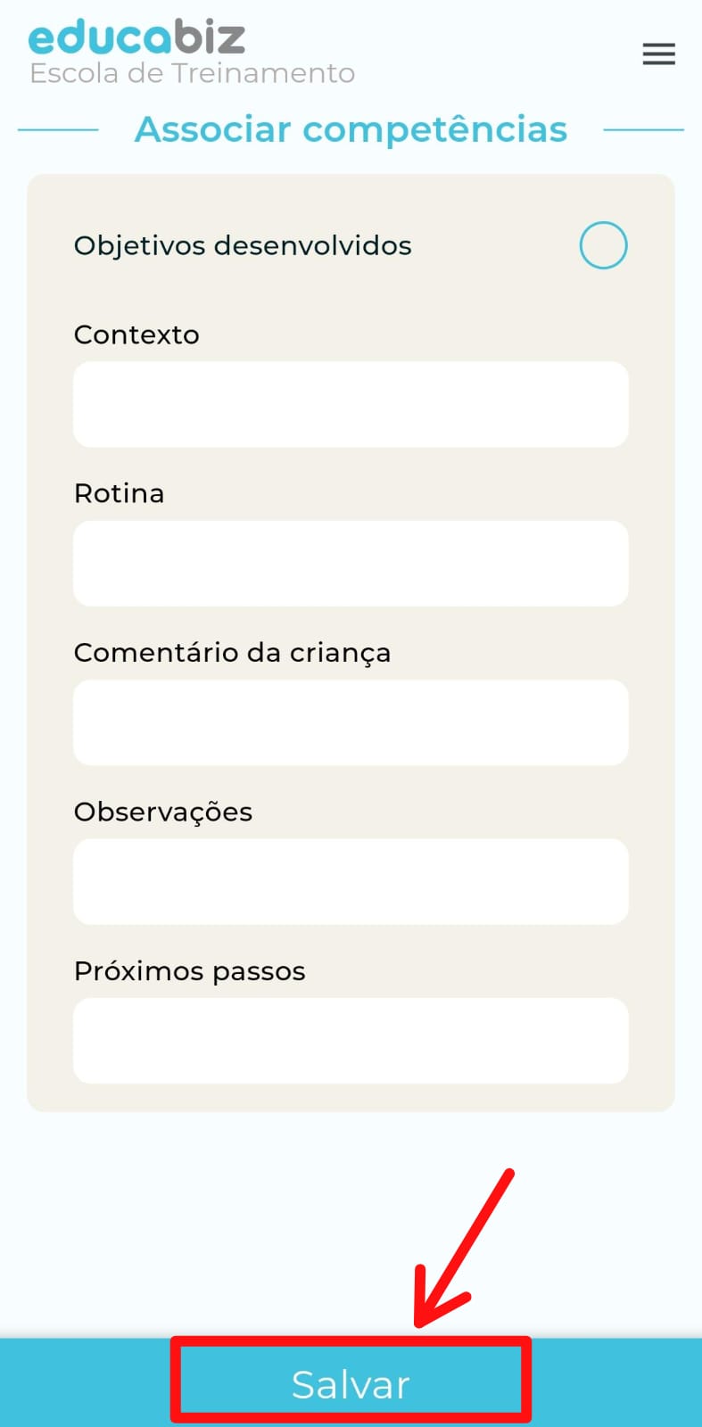 Associar competências, permite que as fotografias ou os vídeos demonstrem aos Responsáveis cada competência trabalhada no registro fotográfico.