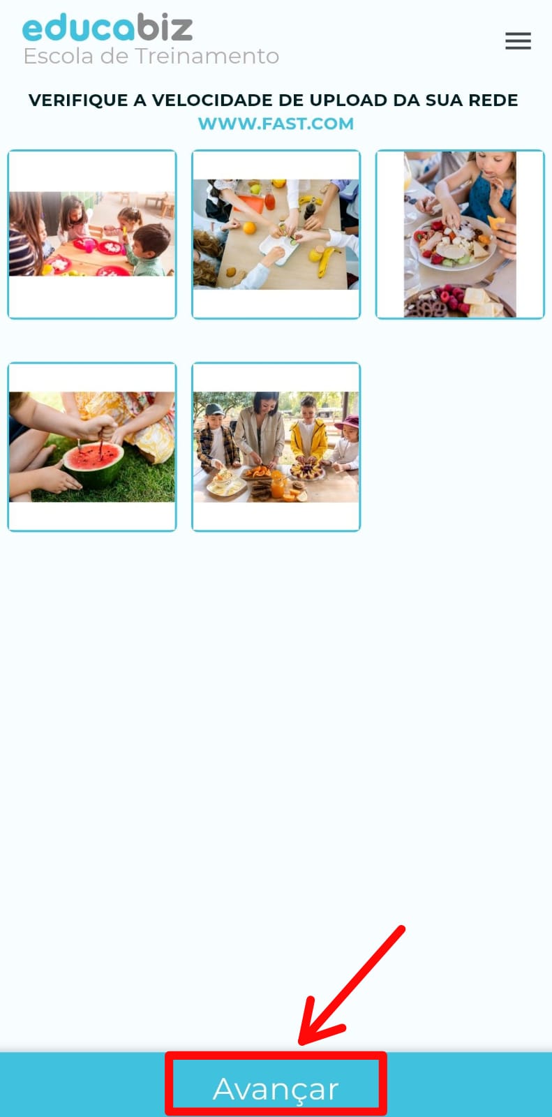 Em seguida, no canto inferior direito clique no botão de seta para realizar o upload das fotos e vídeos.